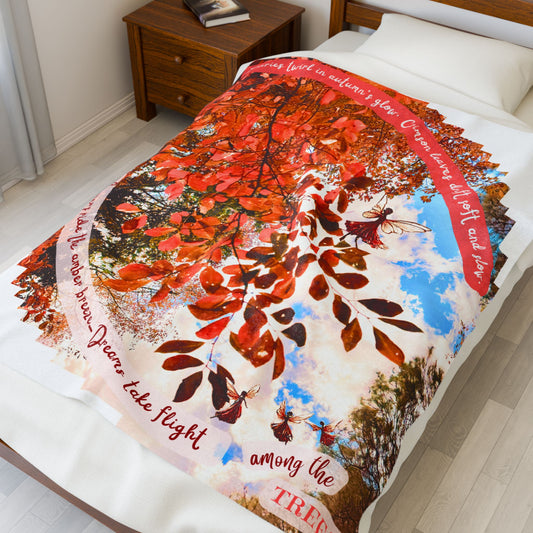 Velveteen Blanket - Cozy Autumn Fairies and Crimson Leaves Design