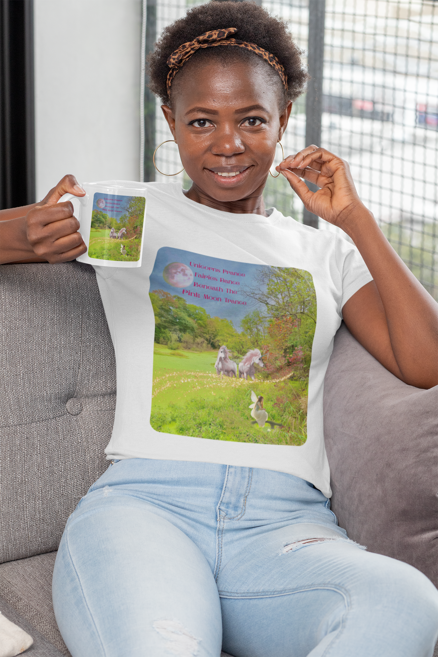 This whimsical and feminine tee shirt features unicorns, a pink moon, a fairy, and an autumn vibe. Perfect for nature and fantasy lovers, this tee is ideal for adding a touch of magic to your wardrobe. A must-have for those who appreciate fantasy and nature elements in their everyday life, especially relevant for Halloween, Thanksgiving, Birthdays or any fantasy-themed events.